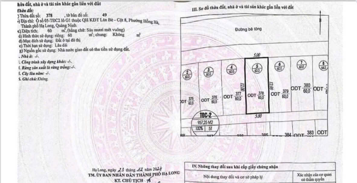 | TĐC2-G1 | 60m2(5m*12m) | ĐƯỜNG 5,5M | B | 120 triệu/m2 | Sổ Hồng |